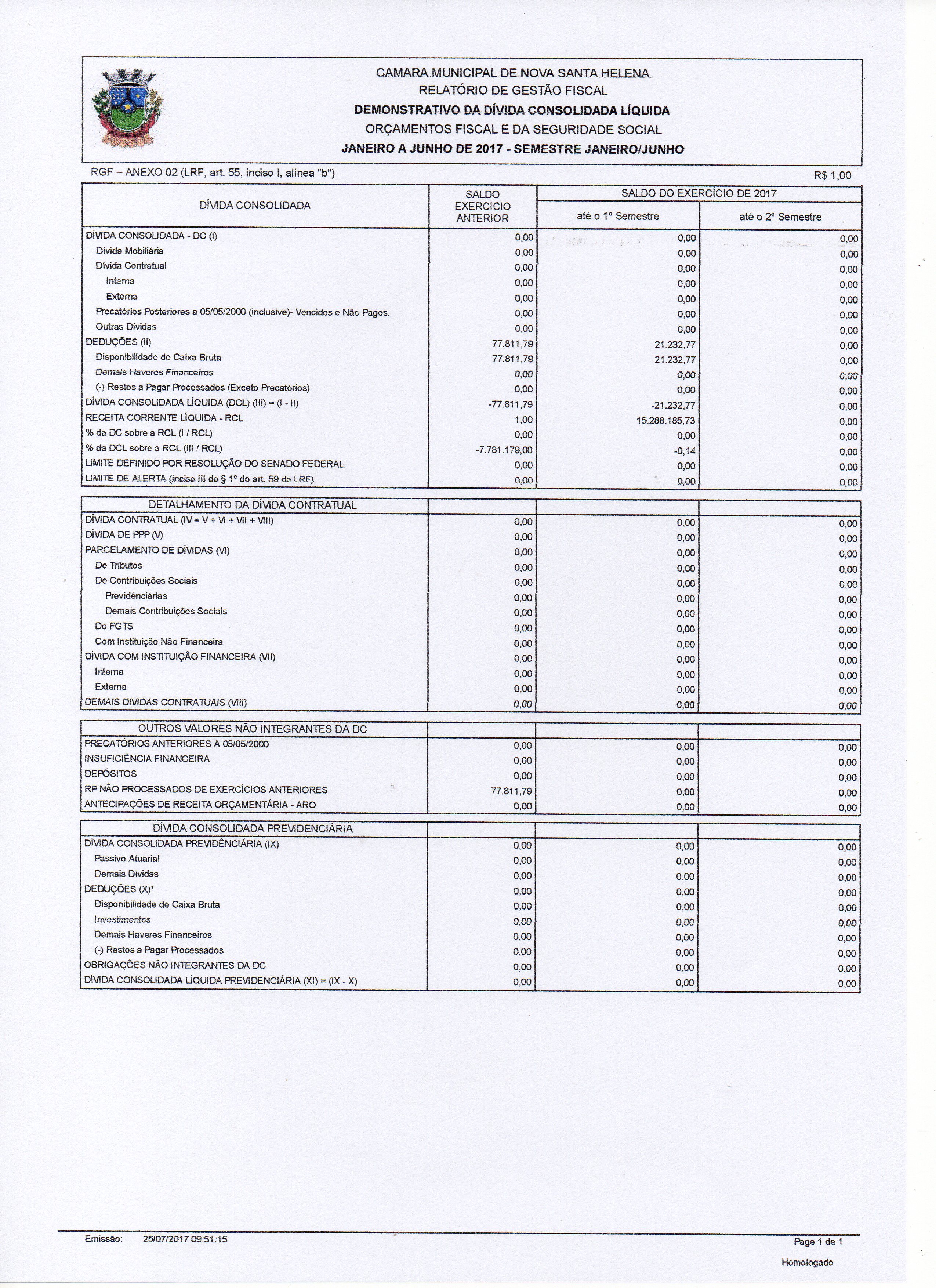 Demonstrativo da Dívida Consolidada Líquida